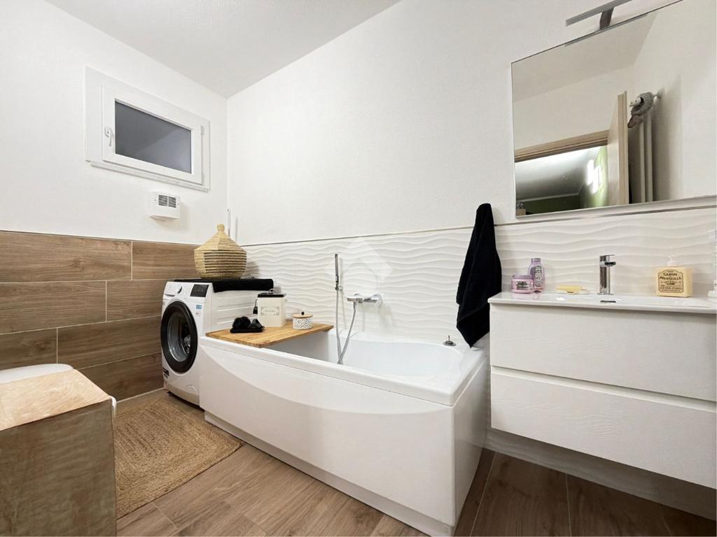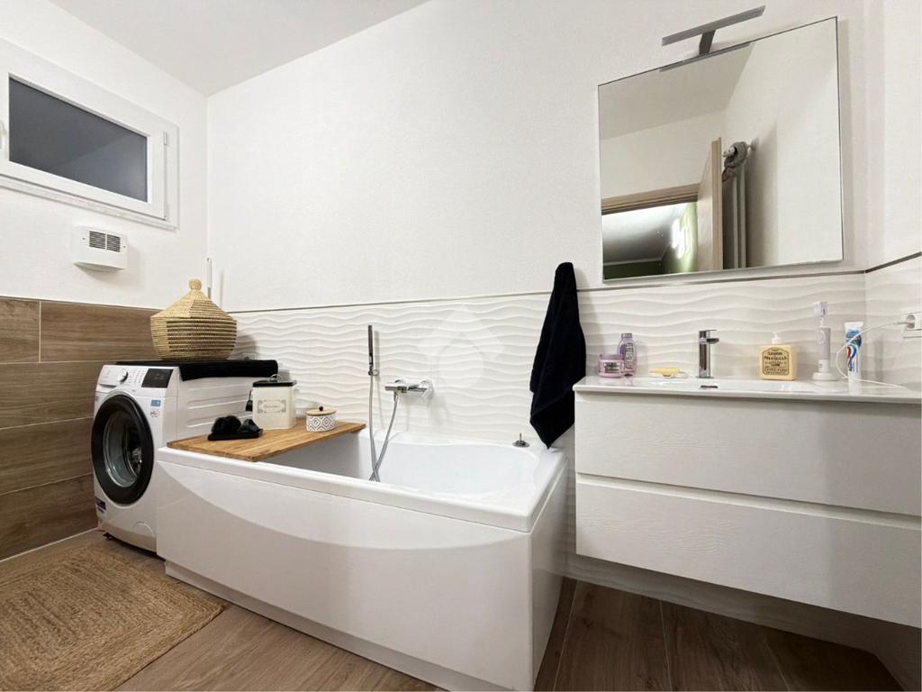Il vero valore aggiunto è rappresentato da un secondo ambiente estremamente versatile, oggi utilizzato come zona notte aggiuntiva, che gode della massima privacy grazie a un secondo bagno dedicato con vasca: uno spazio ideale per ogni esigenza personale.