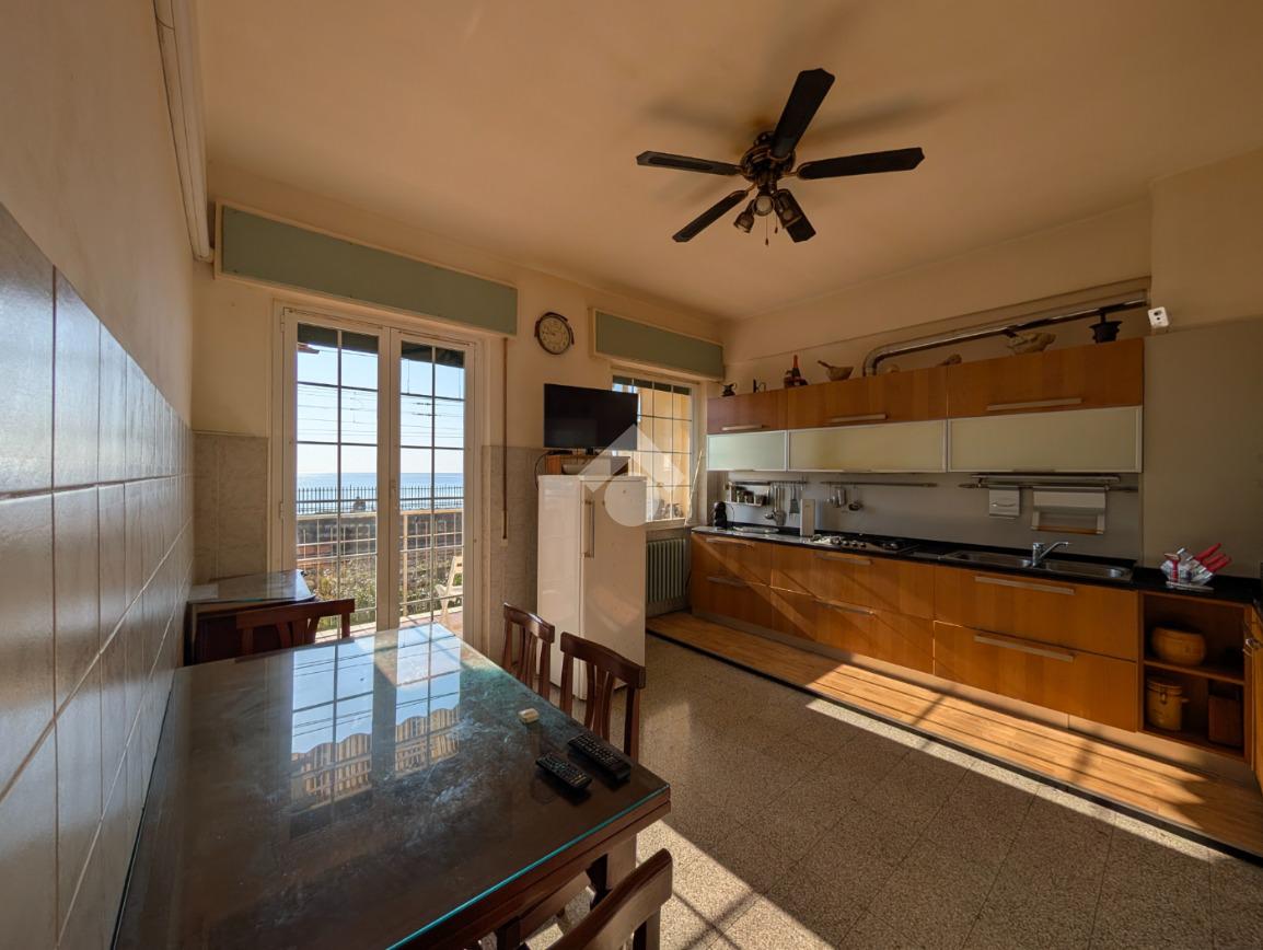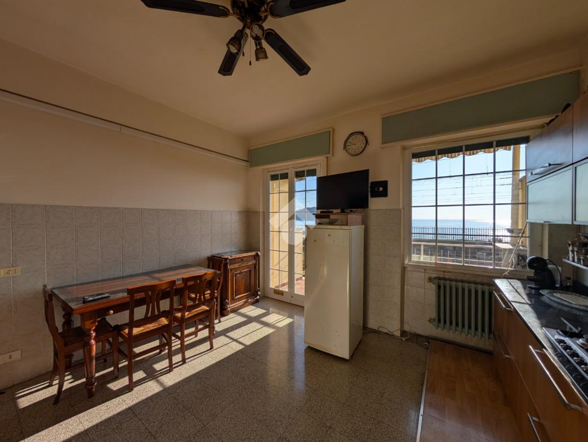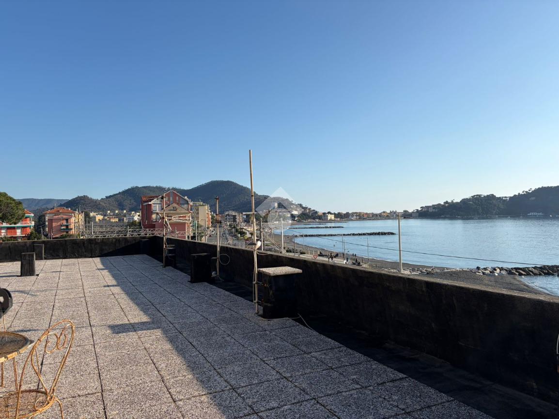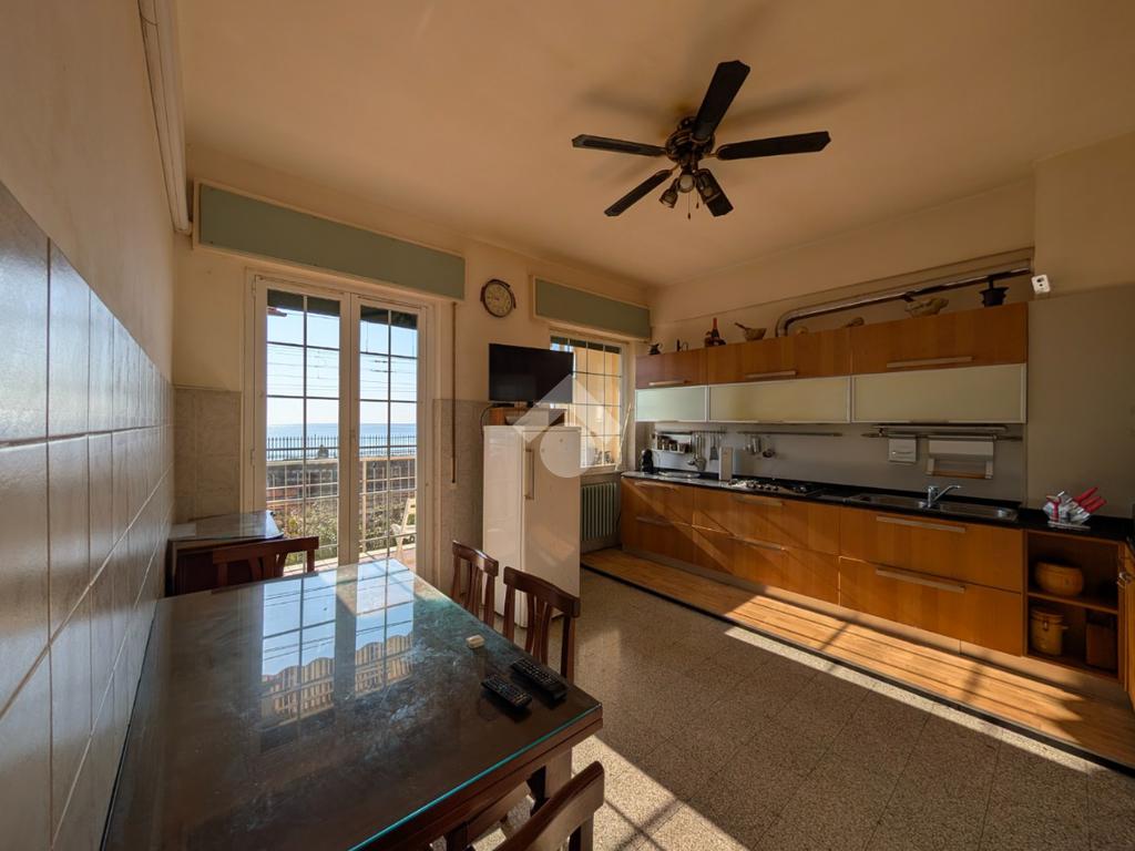 Entrando troviamo uno spazioso ingresso che conduce alla zona giorno composta da una cucina abitabile molto luminosa con balcone fronte mare ed un soggiorno con la stessa esposizione.